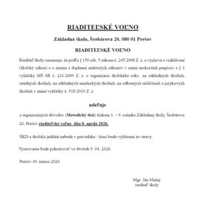 | veľkonočné | 01.apríl 2026 (streda) | 02. apríl – 07. apríl 2026 | 08. apríl 2026 (streda ) | |